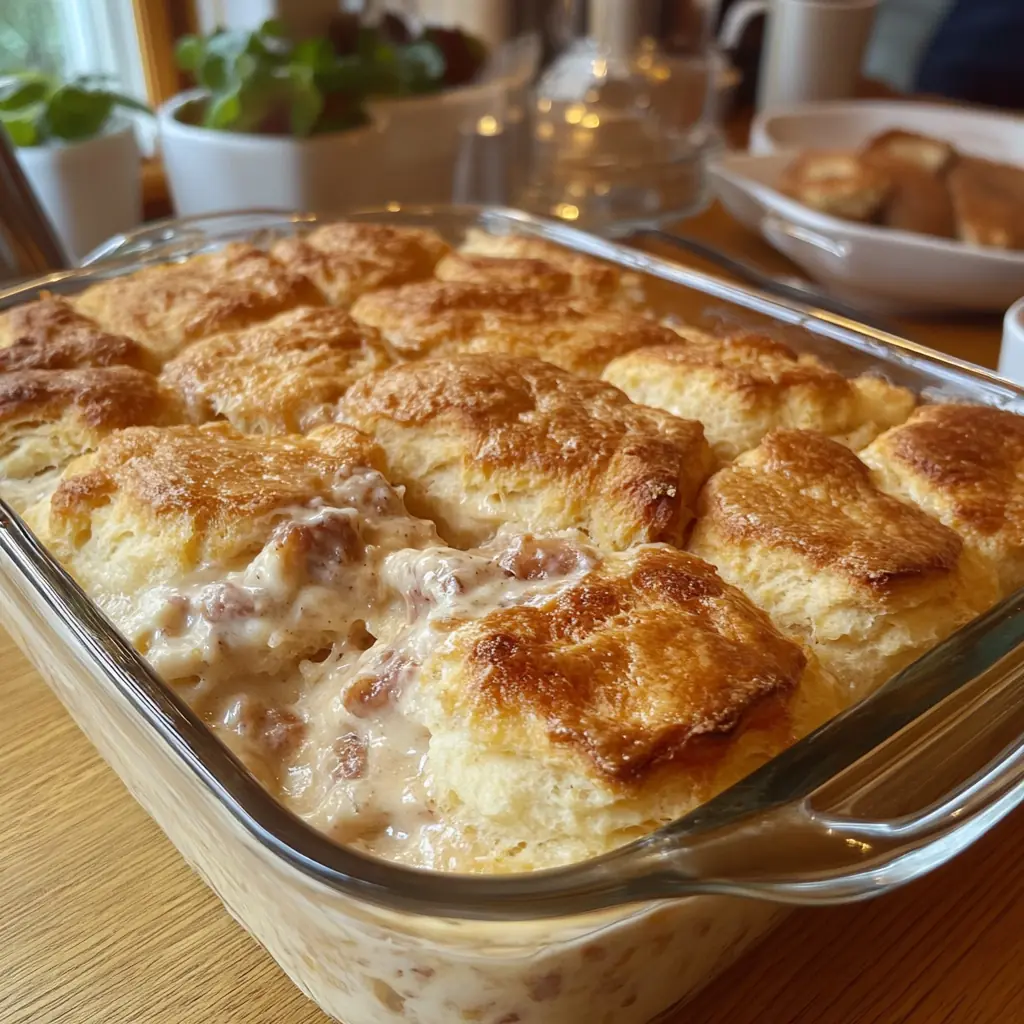 Biscuits and gravy casserole is a hearty, comforting dish made with fluffy biscuits baked on top of creamy sausage gravy. It’s perfect for breakfast, brunch, or a cozy family meal.