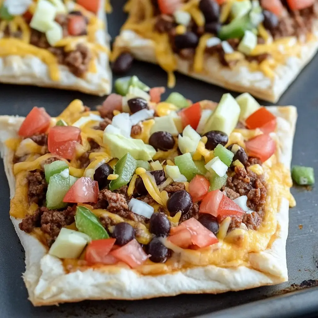 You can adapt this taco pizza to your taste. Try using different cheeses like Monterey Jack or mozzarella for a milder flavor. For added spice, mix chopped jalapeños into the beef or top with a drizzle of taco sauce. You can even add diced onions, black olives, or bell peppers for extra crunch and color. If you’re feeding kids, tone down the seasoning and let them choose their toppings.