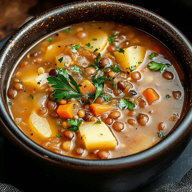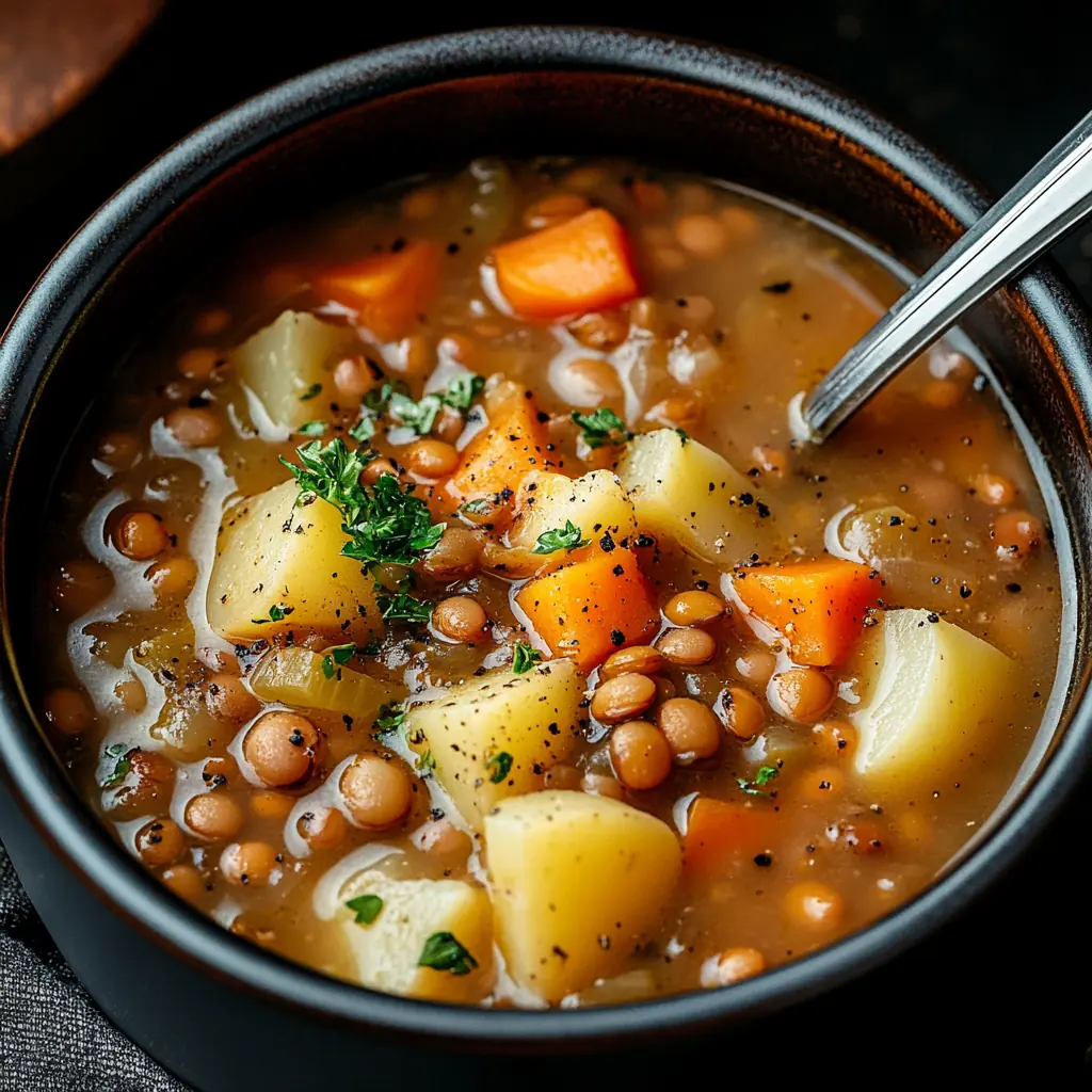I still remember the first time I made this hearty lentil and potato soup on a chilly evening when the rain was softly hitting the kitchen window. The warmth of the simmering pot filled the air with comforting aromas of garlic, onions, and earthy lentils, reminding me of home and the kind of food that makes you feel safe and nourished. This recipe quickly became one of my go-to dishes, not only because of its rich flavors but also because it requires such simple and wholesome ingredients. Every spoonful feels like a warm embrace, and I often find myself making it in big batches so I can share it with friends or keep some ready for quick meals throughout the week.