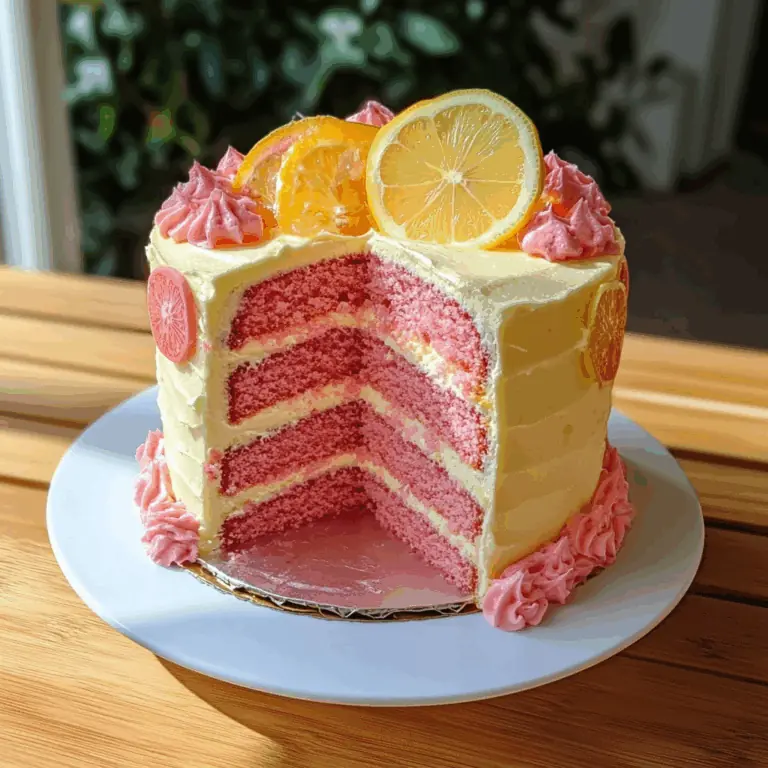 I have always loved the refreshing taste of lemonade, especially when paired with something sweet. That’s why I created this Pink Lemonade Cake—a dessert that reminds me of sunny afternoons, spring celebrations, and family gatherings. With its cheerful colors and vibrant flavors, this cake never fails to brighten up the table. Every bite brings together the tanginess of lemon and the sweetness of raspberry, making it both refreshing and indulgent. It feels like enjoying a glass of cool pink lemonade in cake form.