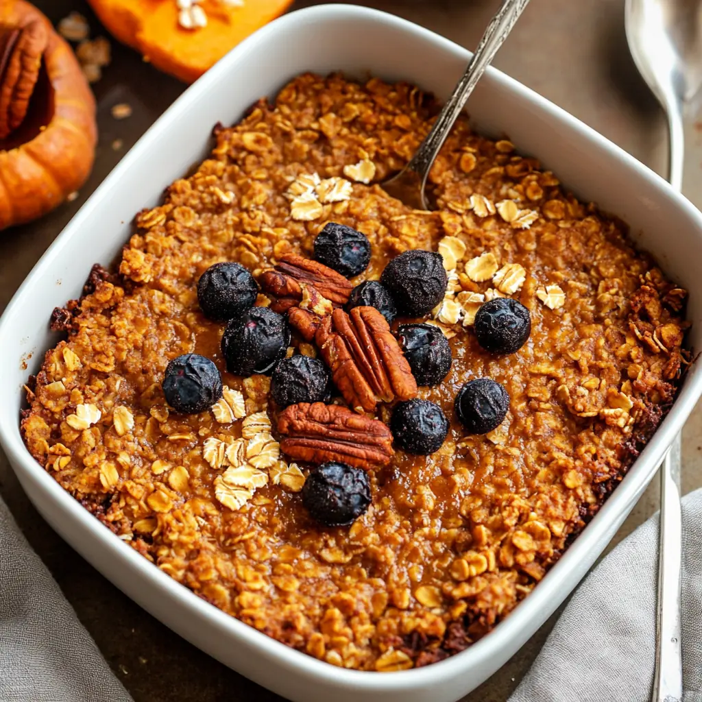 This recipe is one of my seasonal favorites because it perfectly balances indulgence with nutrition. The pumpkin puree gives it a moist texture and a beautiful golden color, while the oats make it hearty enough to keep you full for hours. Whether you enjoy it fresh out of the oven or reheat it the next day, each bite tastes like autumn comfort in a bowl. I love pairing it with a steaming cup of coffee or tea and taking a few peaceful moments before the day begins.
