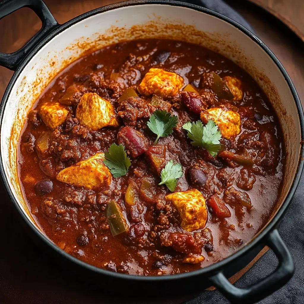 Serve: Ladle the chili into bowls and garnish with extra shredded cheddar, sliced scallions, cilantro, and a dollop of sour cream if desired. Each serving is a hearty, smoky, and comforting bowl perfect for any occasion.